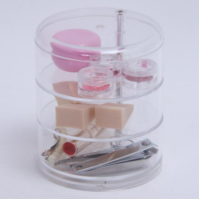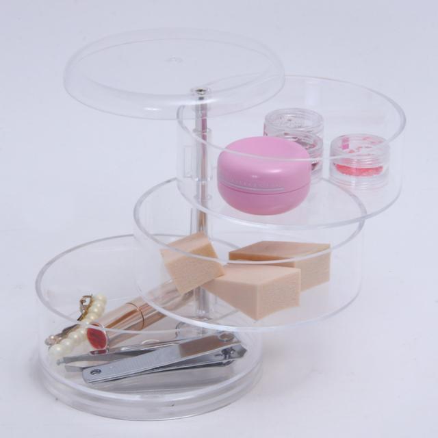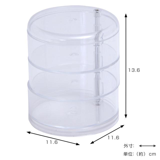 収納ケース コスメ収納 3段ラウンド 小物入れ ( 幅11.6×奥行11.6×高さ13.6cm 収納 小物 小物収納 小物ケース クリア 綿棒 フタ付き 卓上 回転 丸 衛生用品 絆創膏 化粧品 入れ ボックス メイク道具 メイクスポンジ メイクパフ )