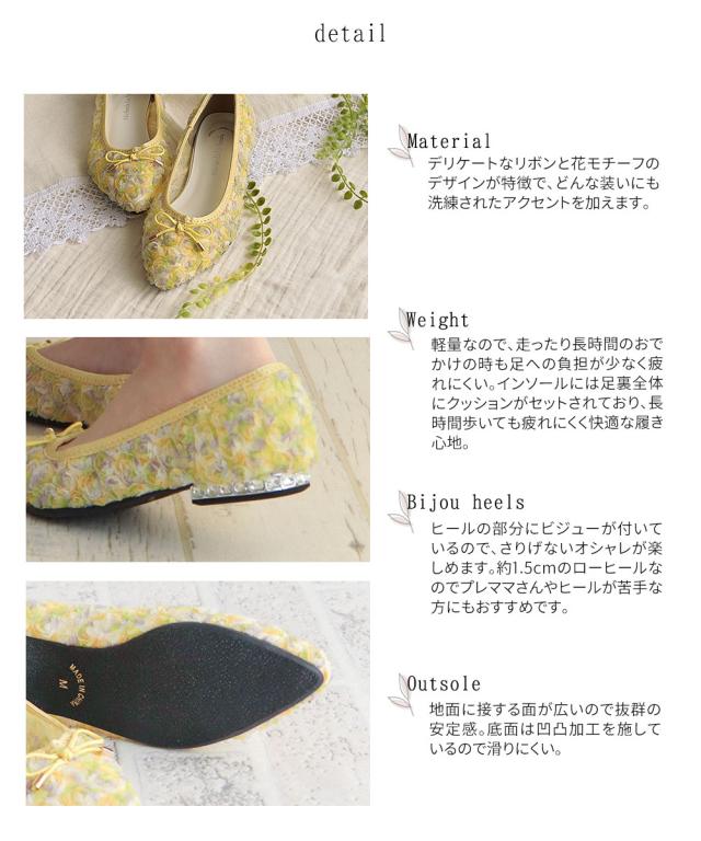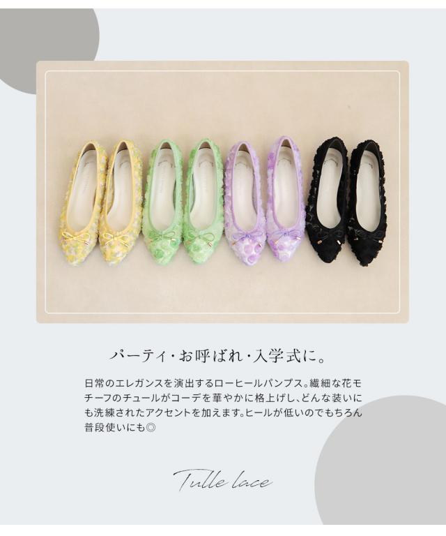パンプス ローヒール 花 りぼん かわいい パステルカラー 歩きやすい 痛くない 歩きやすい 透け感 レース 華やか お呼ばれパンプス 結婚式 謝恩会 二次会 セレモニー 発表会 コンサート プレママ ぺたんこ靴 婦人靴 ヒール 1407