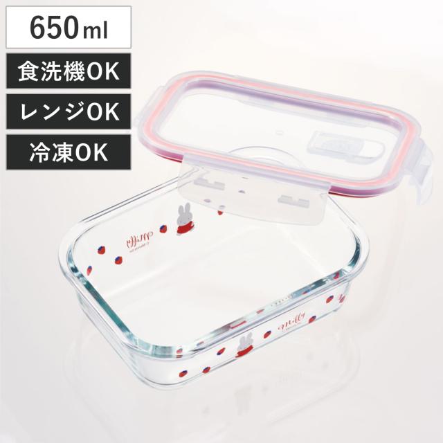 保存容器 650ml ガラス保存容器 M ミッフィー ( ガラス 耐熱ガラス 食洗機対応 電子レンジ対応 オーブン対応 冷凍 冷蔵 密閉 容器 Miffy 4点ロック フタをしたままレンジ キャラクター かわいい )
