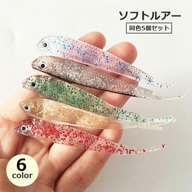 ソフトルアー 5個セット ワーム 小魚 釣り用品 フィッシング用品 V字テール 疑似餌 釣り餌 ソフトベイト バス アイナメ ヒ