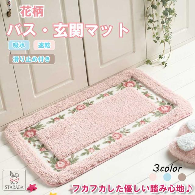 バス 玄関マット キッチンマット 花柄 お風呂マット 厚い ふわふわ おしゃれ 吸水マット 速乾 サラサラ 滑り止め付き 防音 丸洗い 浴室 お風呂 洗面所 玄関
