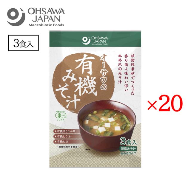 オーサワの有機みそ汁 生みそタイプ 3食入 20袋セット オーサワジャパン 味噌汁 簡単
