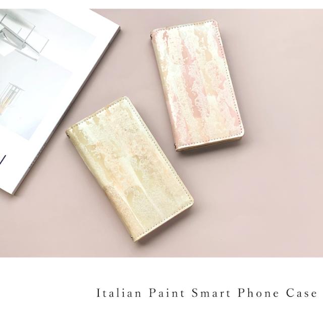 本革 イタリア製 ペイント 手帳型ケース(内側:黒TPU ケース)