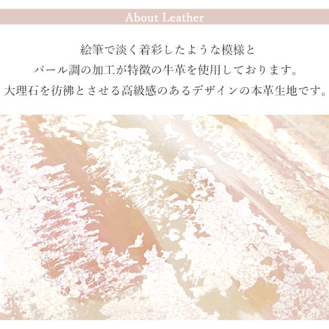 絵筆で淡く着彩したような模様とパール調の加工が特徴の牛革をしようしております。