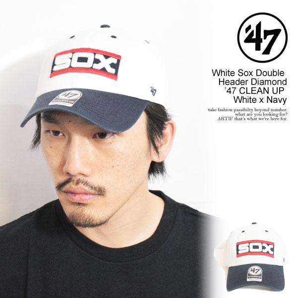 '47 フォーティーセブン White Sox Double Header Diamond ’47 CLEAN UP White x Navy メンズ キャップ ホワイトソックス atfcap