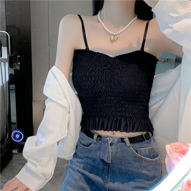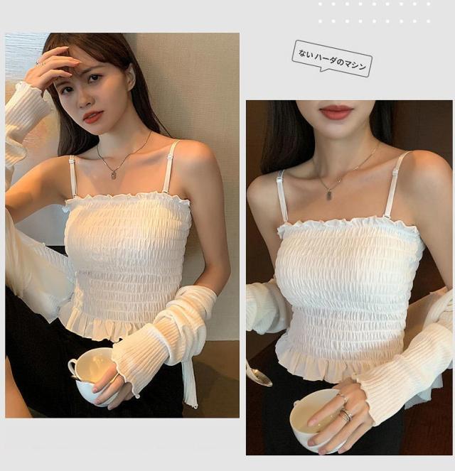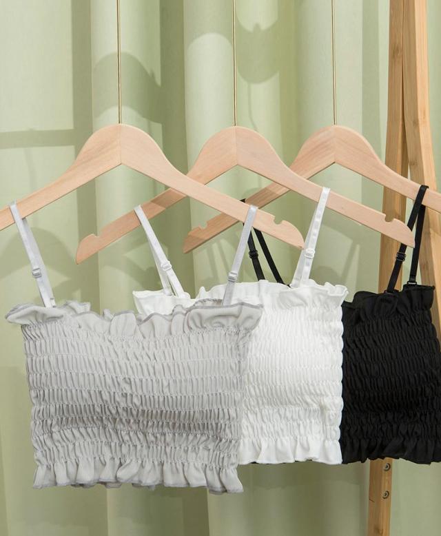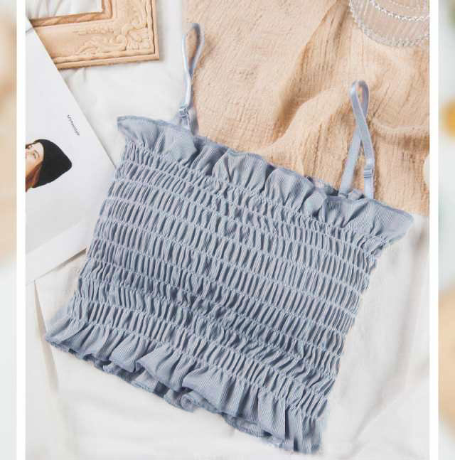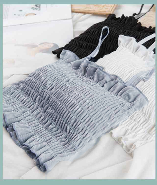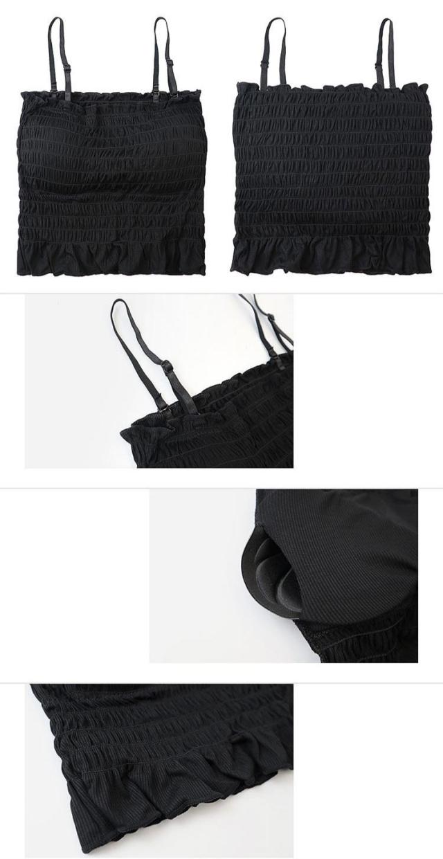 チューブトップ パット付 シャーリング フリル ベアトップ 伸縮 涼感