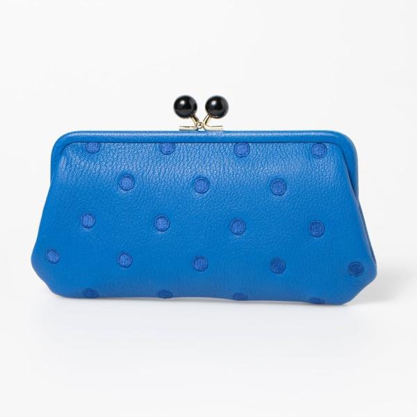 長財布 財布 レディース がま口財布 ブルー ドット Perche ペルケ アクリル玉 BLDOT 本革 革 おしゃれ 青 さいふ お財布 小銭入れ がま口