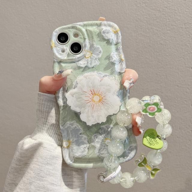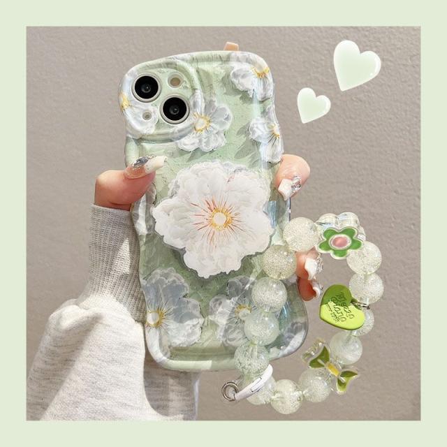 お花のストラップ 波形 花柄 iPhone14pro Plus ProMax iPhone13 12 11 ストラップ付き なみなみ 携帯 可愛い
