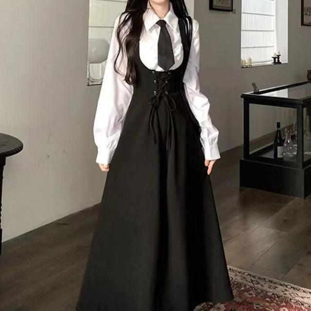 女子制服 コスプレ 長袖 シャツ+ネクタイ+キャミソールワンピース 3点セット コスチューム衣装 春秋 JK制服 高校生 コスプレ可愛い 大きいサイズ 学園祭 大人 クリスマス ハロウィン パーティー お呼ばれ