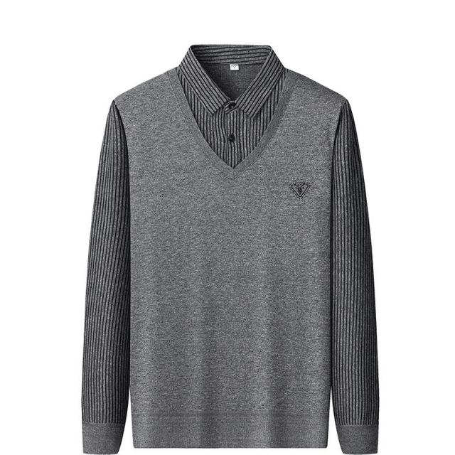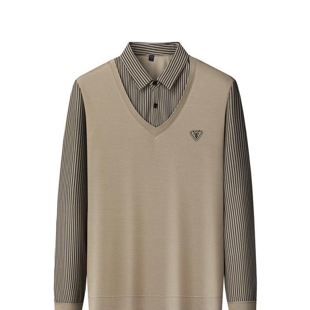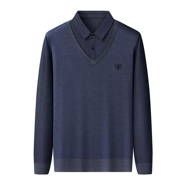 メンズ ニットセーター カットソー フェイクレイヤード ポロシャツ 秋冬 セーター トップス シンプル 大きいサイズ ゴルフウェア カジュアル インナー 重ね着風 襟付き 紳士服 通勤 通学
