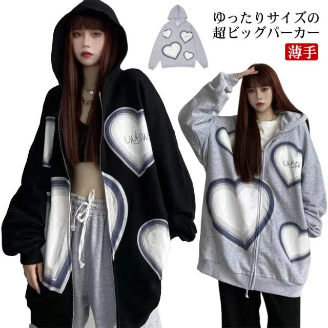 大きいサイズ オーバーサイズ レディース ビッグサイズ フード付きパーカー パーカー オーバーサイズ スウェット 春服 薄手 BIGパーカー ライトアウター 秋服