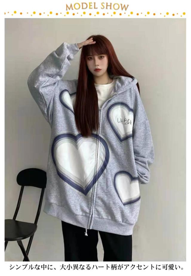 | ゆったりサイズの超ビッグパーカー。 シンプルな中に、大小異なるハート柄がアクセントに可愛い。 たっぷり身幅とドロップショルダーがボリュームのあるインナーの時にも羽織れるのが嬉しいポイント◎ お尻が隠れる長め丈、細身のボトムはもちろん、ゆったりパンツでも、ワンピースの羽織りとしてもOKなオールマイティーアウター。 ラフでこなれた大人女子のオーバーサイズパーカーです。 | |
