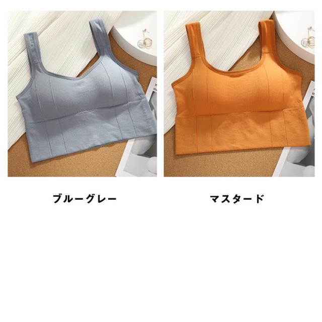 | リブ生地で下着っぽくならず、1枚ですっきり着こなせる。 リブ素材ならではのストレッチ性、ピッタリフィットして、トップスに響かない。 スクエアネックがスポーティな印象に、ヘルシーに魅せる。 太めの肩紐で肩が痛くなりにくく、長時間着用しても楽な着心地。 ノンワイヤーなので日中はもちろん、 おうち時間やリラックスタイムにも◎ ヨガ、フィットネスなどのスポーツブラとしてもおすすめ! | |