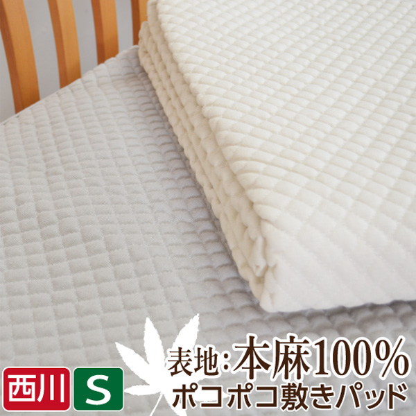 【西川】 洗える 本麻100% ポコポコ 敷パッド シングル 約100×200cm リピーター続出 天然素材 涼寝具 通気性 放熱性 洗濯機で洗える 涼感 夏 爽やか ひんやり さっぱり さらさら ベッドパッド 熱中症対策 節電 贈り物