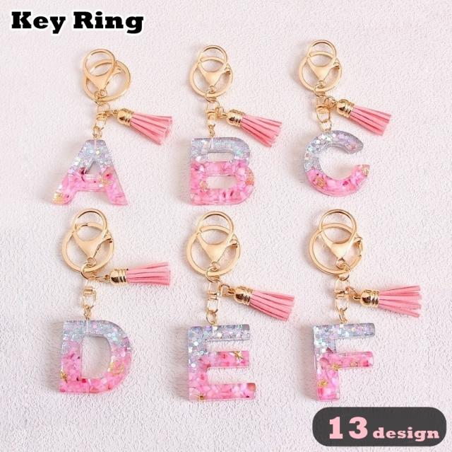 キーホルダー キーリング レディース 女性 お揃い ペアルック ファッション雑貨 カニカン 二重リング フリンジ アルファベット