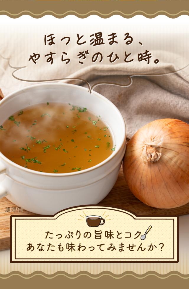 - 市販されている玉ねぎスープより、玉ねぎの味がよく出ていて、美味しく頂きました。