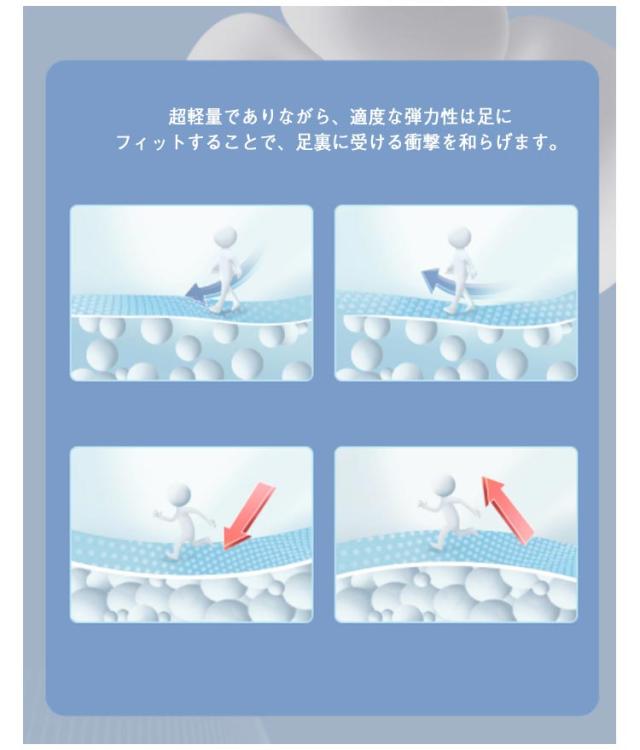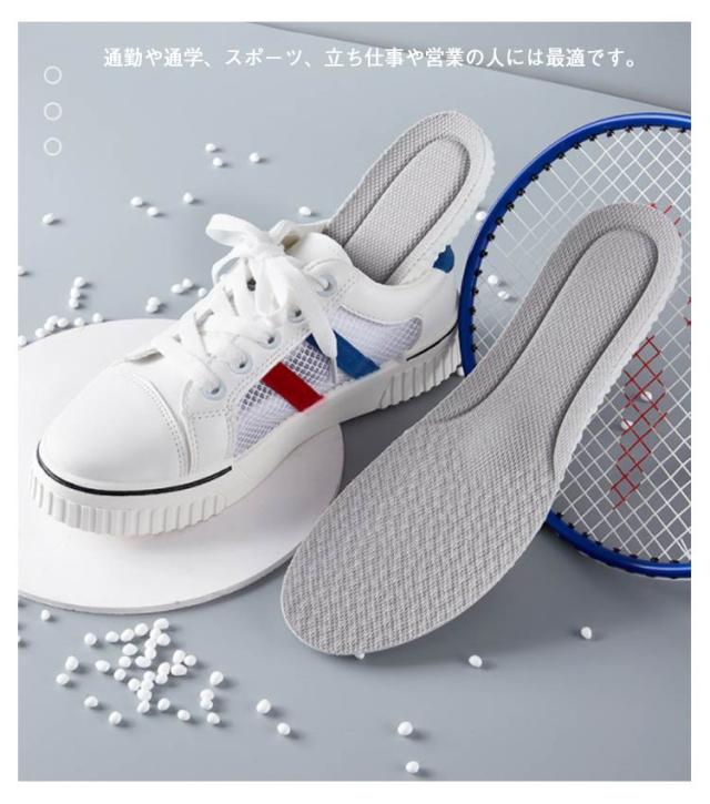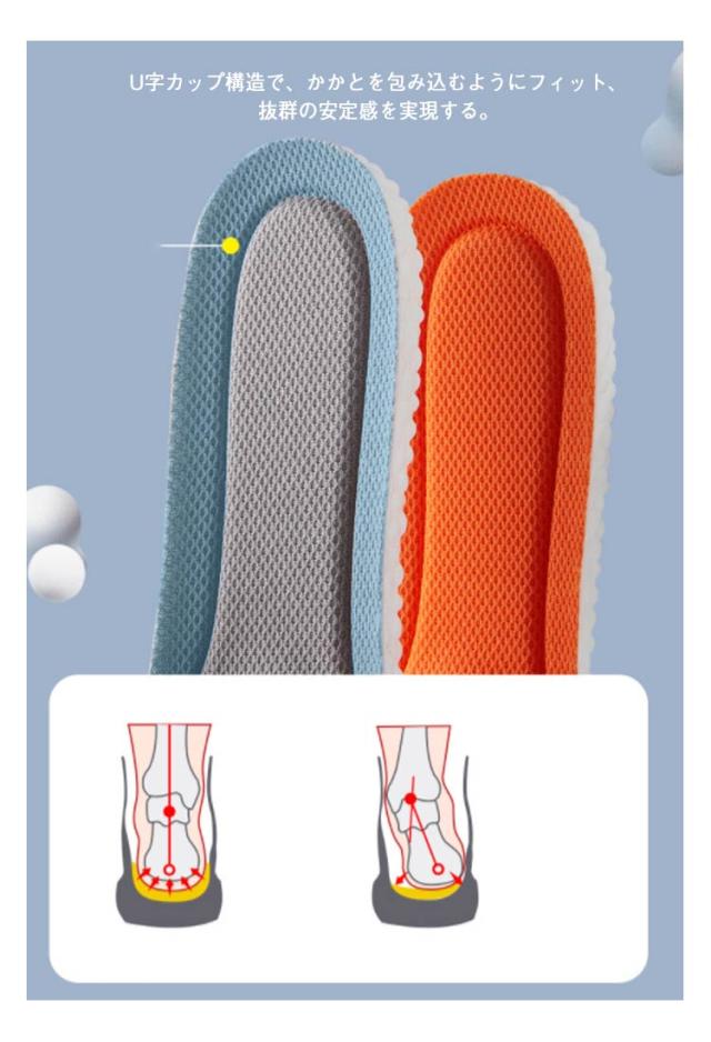| クッション性と反発性を兼ね備えたインソール。 柔らかくクッション性に優れし、長時間のご使用でも体への負担なく快適に歩いていただけます。 超軽量でありながら、適度な弾力性は足にフィットすることで、足裏に受ける衝撃を和らげます。 U字カップ構造で、かかとを包み込むようにフィット、抜群の安定感を実現する。 メッシュ素材で通気性がよく、長時間履いていても蒸れづらく気になる臭いがおさえられます。 自分のサイズに合わせて家庭用のハサミで簡単にカットできます。 通勤や通学、スポーツ、立ち仕事や営業の人には最適です。 | |