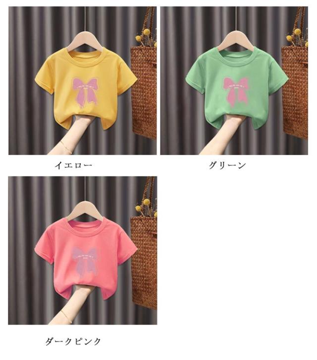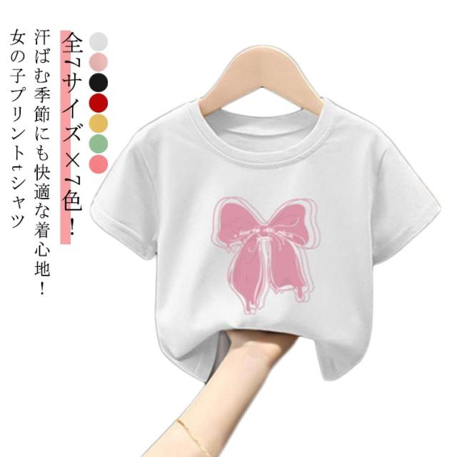 半袖Tシャツ 女の子 Tシャツ 子供服 キッズ ベビー トップス tシャツ プリントtシャツ 綿 通気性 柔らかい 快適 リボン ガールズ かわいい 姉妹 お揃い 夏服 大きいサイズ 親子 ティーシャツ キッズtシャツ キッズトップス 通園 通学 ギフト 送料無料