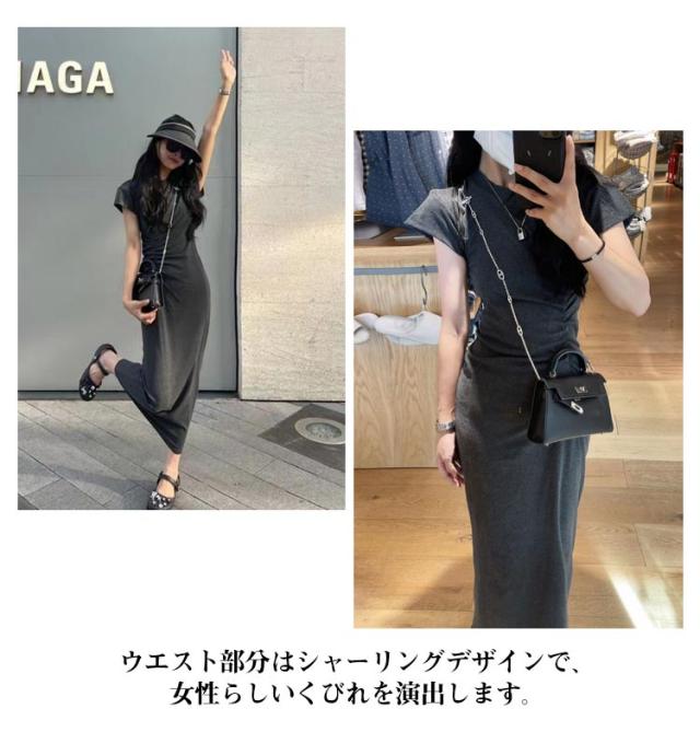 | 半袖でボディラインを美しく見せるタイトロングワンピースです。 ウエスト部分はシャーリングデザインで、女性らしいくびれを演出します。 シンプルながらもセクシーさを兼ね備え、スタイリッシュな印象を与える一着です。 タイトながらも伸縮性のある生地で作られており、美しいシルエットを保ちながら動きやすさを提供します。 デイリー使いからデート服としても活躍するこのワンピースは、様々なシーンで着回しがききます。 ロング丈で膝を覆うデザインは、上品さと快適さを両立させ、一日中リラックスして着用できるため、インナー、ルームウェアとしても最適です。 | |