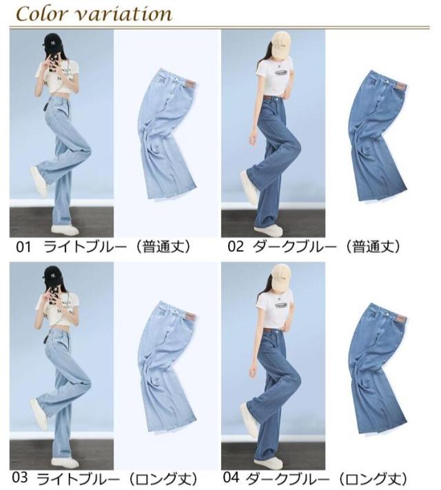 | 色 | ライトブルー(普通丈) ダークブルー(普通丈) ライトブルー(ロング丈) ダークブルー(ロング丈) ライトブルー(九分丈) ダークブルー(九分丈) ライトブルー(普通丈ウエストゴム) ダークブルー(普通丈ウエストゴム) ライトブルー(五分丈ウエストゴム) ダークブルー(五分丈ウエストゴム) |