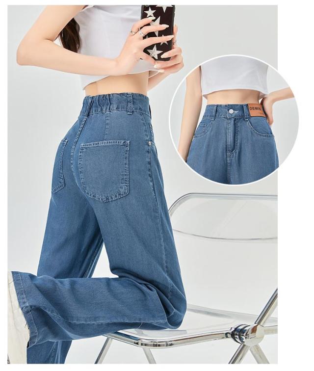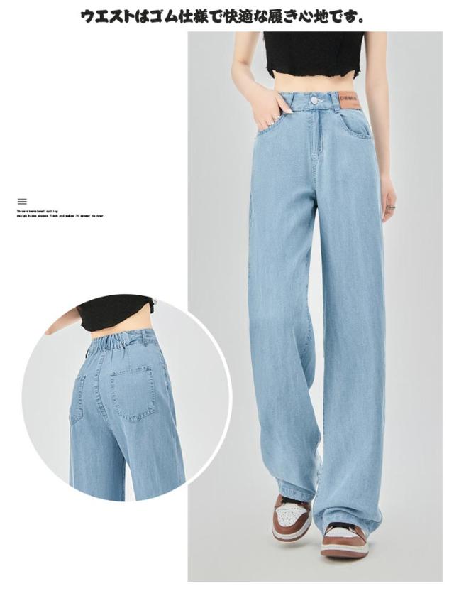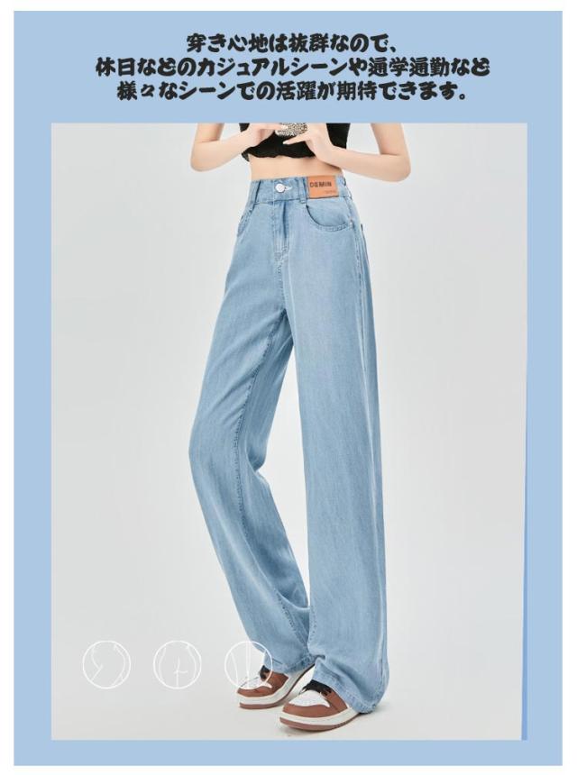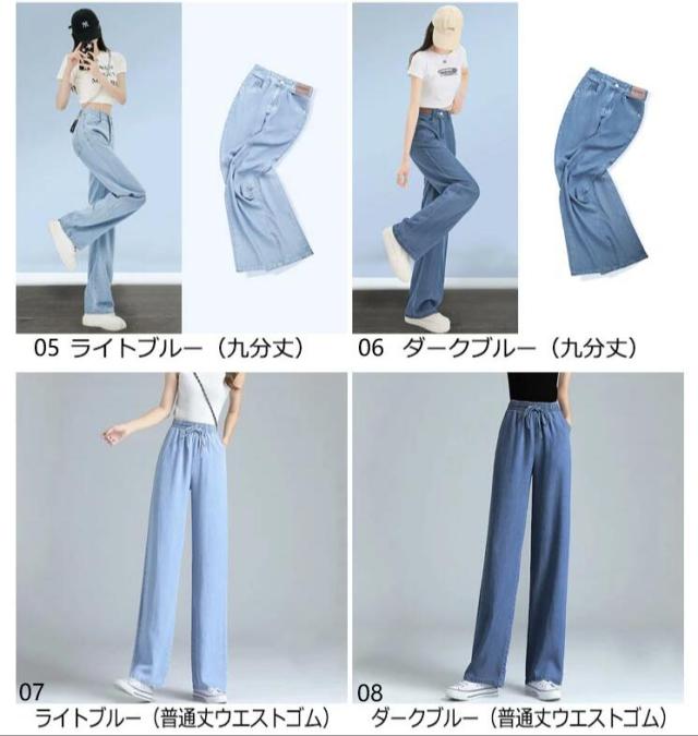 デニムパンツ レディース 大きいサイズ 高身長 低身長 夏 ワイドパンツ デニム ウェストゴム ハイウェスト 細見え パンツ ロング丈 ひんやり 接触冷感 ロングパンツ 長ズボン ストレート 涼しい 柔らかい ジーンズ 夏用 ジーパン 冷感パンツ カジュアル