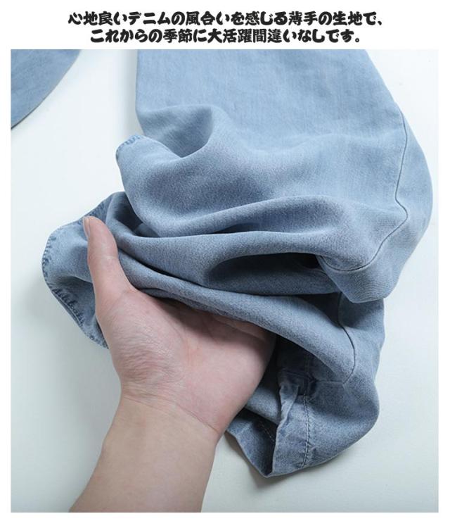 | 涼しいアイスシルク デニムパンツ。軽やかな冷感パンツ。 ハイウエストデザインが脚長効果を高め、体型カバーが抜群。 ウエストはゴム仕様で快適な履き心地です。 心地良いデニムの風合いを感じる薄手の生地で、これからの季節に大活躍間違いなしです。 穿き心地は抜群なので、休日などのカジュアルシーンや通学通勤など様々なシーンでの活躍が期待できます。 | |