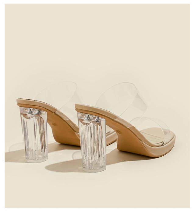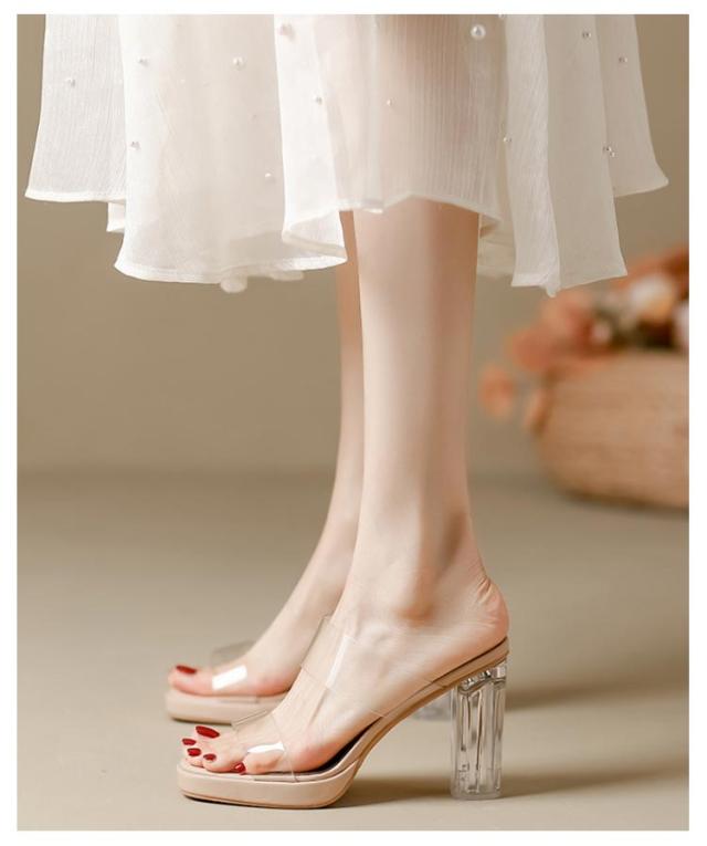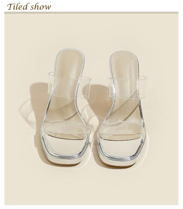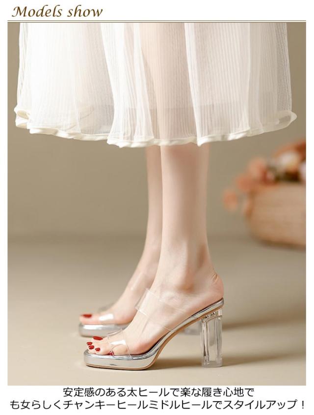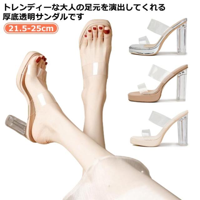 厚底 クリアサンダル レディース 美脚 サンダル ダブルベルト 透明サンダル ミュール ヒール高さ 7/9/11cm チャンキーヒール 太ヒール クリアヒール ハイヒール 歩きやすい サンダル 美脚サンダル 痛くない シューズ 靴 夏 小さいサイズ 大きいサイズ 21.5-25cm