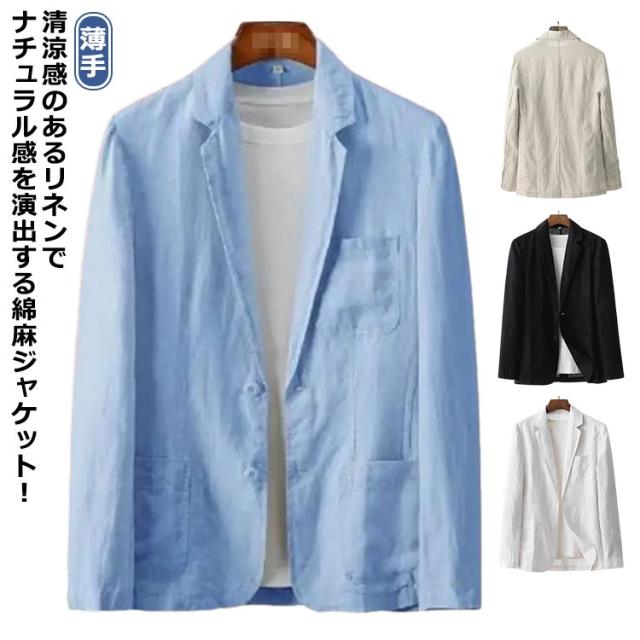 リネンジャケット メンズ サマージャケット 大きいサイズ 綿麻 テーラードジャケット サマージャケット 春夏 薄手 麻混 無地 ライトアウター 長袖 アウトドア 紫外線対策 カジュアル ビジネス 紳士服 春 夏 秋 大きいサイズ 送料無料 父の日 プレゼント ギフト