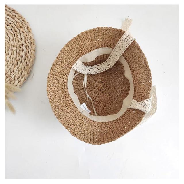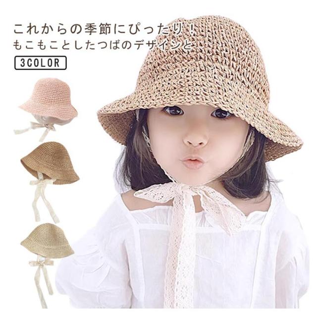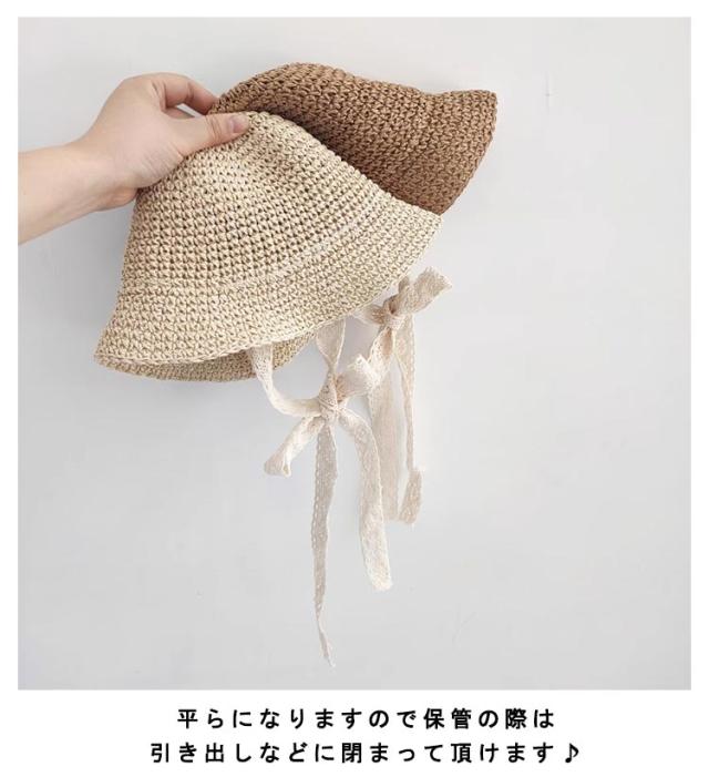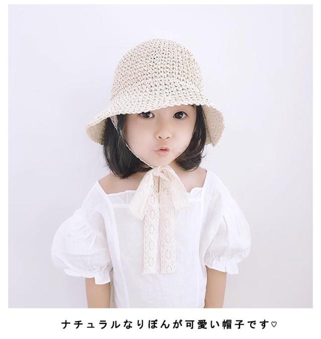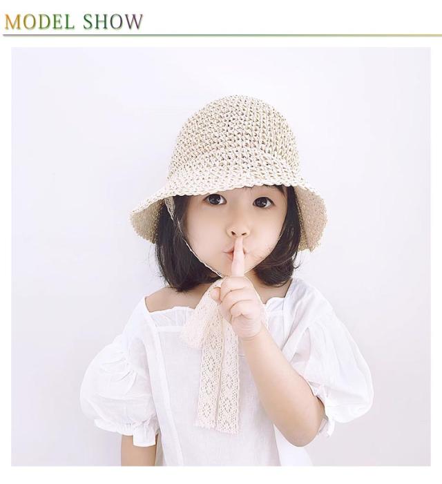麦わら帽子 キッズ つば広 ストローハット レース リボン 麦わらハット 麦わら帽子 キッズ ベビー あご紐 折りたたみ ハット 帽子 女の子 日よけ 日焼け対策 紫外線対策 サンハット バケットハット 夏用 子供帽子 赤ちゃん お出かけ お散歩 かわいい 48cm 52cm