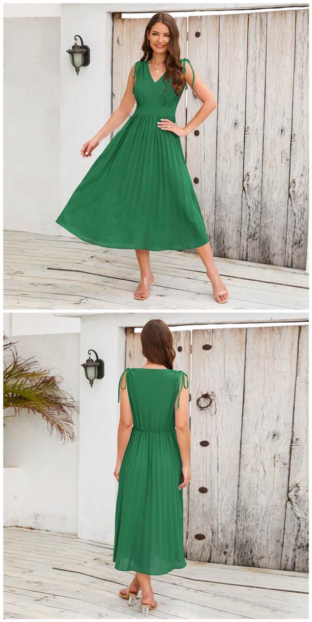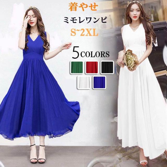 【S/M/L/XL/2XL】夏ワンピース リゾートロング丈 ミモレワンピース マキシ丈 ブラック グリーン vネック ボヘミア風 無地 シフォン ビーチ 女性らしさ溢れる 夏ワンピ ビーチ 旅行 海デート リゾート 大人可愛い