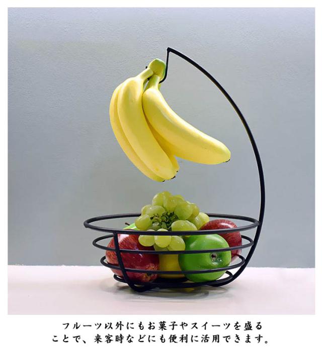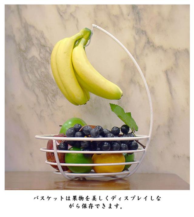 | バナナスタンド付きのフルーツバスケットです。 スタンドに吊るすことでバナナを美味しい状態でキープでき、通気性のいいバスケットは果物を美しくディスプレイしながら保存できます。 フルーツ以外にもお菓子やスイーツを盛ることで、来客時などにも便利に活用できます。 様々なインテリアに馴染みやすいシンプルですっきりしたデザインです。 | |