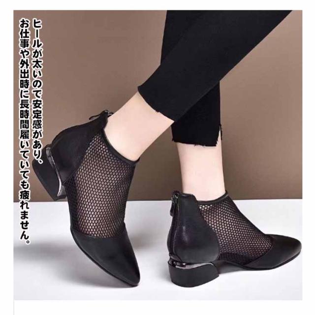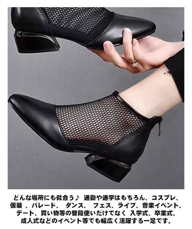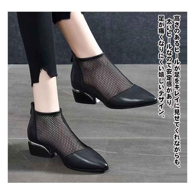 サマーブーツ メッシュ ブーツサンダル レディース 通気性 透け感 太ヒール ブーティー ショートブーツ 歩きやすい 靴 シューズ チャンキーヒール カジュアル 美脚 ミドルヒール サンダル 春 夏 秋 黒 可愛い 夏用ブーツ 通学 通勤