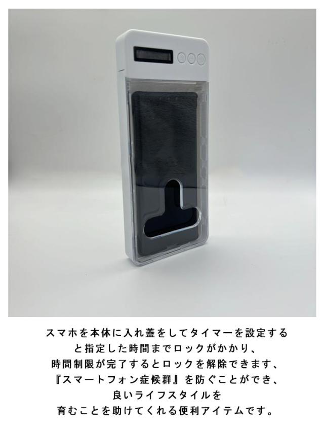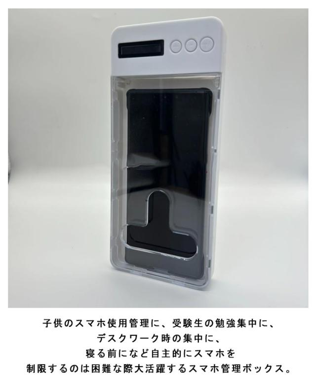 | スマホ依存症対策に最適♪スマホタイムロックボックス。 ロック中充電・電話対応OK スマホを本体に入れ蓋をしてタイマーを設定すると指定した時間までロックがかかり、時間制限が完了するとロックを解除できます、『スマートフォン症候群』を防ぐことができ、良いライフスタイルを育むことを助けてくれる便利アイテムです。 子供のスマホ使用管理に、受験生の勉強集中に、デスクワーク時の集中に、寝る前になど自主的にスマホを制限するのは困難な際大活躍するスマホ管理ボックス。 スマホゲームのしすぎや寝る前にスマホをいじってしまうなど欲求を物理的な隔離により、簡単にスマホ依存を断ち切れます。 合宿や修学旅行などお子様が外出先にもスマートフォンの使用をしっかり管理でき、スマホ依存対策になります。 表はクリアなので、電話着信を確認できるから、着信に応答したり、拒否したりすることができます。 スマホのようなコンパクトなサイズ、持ち歩くのにとても便利なタイマー付きスマホロックボックスです。 | |