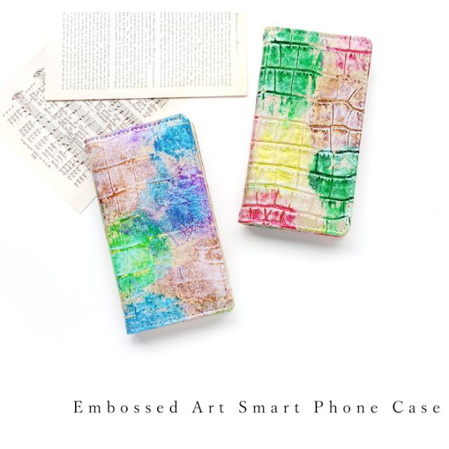 本革 型押しアート 手帳型ケース(内側:黒TPU ケース)