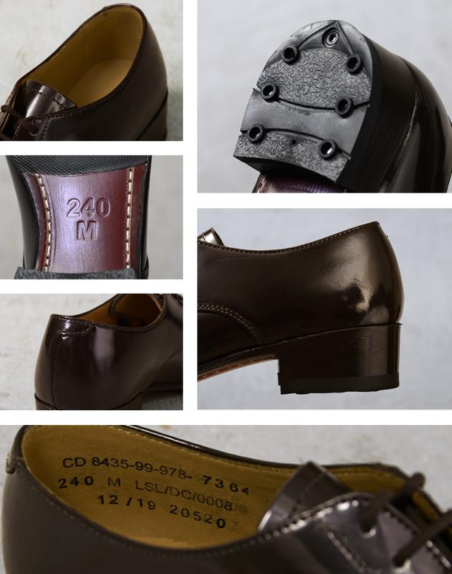 | 商品説明 | 実物 新品 デッドストック イギリス軍 ドレスシューズ / オフィサーシューズ ウィメンズ BROWNのご紹介です。 英国陸軍発行のドレス(オフィサー)シューズ。英国陸軍、ACF、CCF 職員の制服要件を満たすように特別に設計されています。 最も正統派とも言えるイギリスの革靴。トラディショナルなデザインで、安心感のあるラウンドトゥや二の甲から自然に上昇する甲の高さ、ホールド性の高い履き口が特徴。 撥水性の高いガラスレザーが使用され適度な光沢があり、シューホールは、軍用シューズにルーツを持つ外羽根式で上品ながら甲部分の可動域が広く動きやすい設計になっています。 先端とヒール部分は、ハーフラバーソールで、雨の日にも滑りにくく歩きやすい仕上がりに。 イギリス靴らしい細身な印象のシルエットで、ビジネス・フォーマルシーンはもちろんのこと、本格的なモッズコーデやカジュアルコーデのアクセントとして幅広く活躍する一足です。 | ||||||||||||||||||||