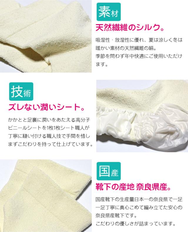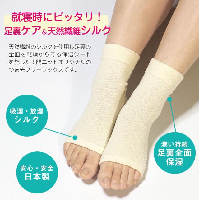 足裏全面ツルツル靴下 薄手 寝るとき用 シルク100%使用 かかとケア靴下 かかとつるつる靴下 かかとサポーター ★836 太陽ニット