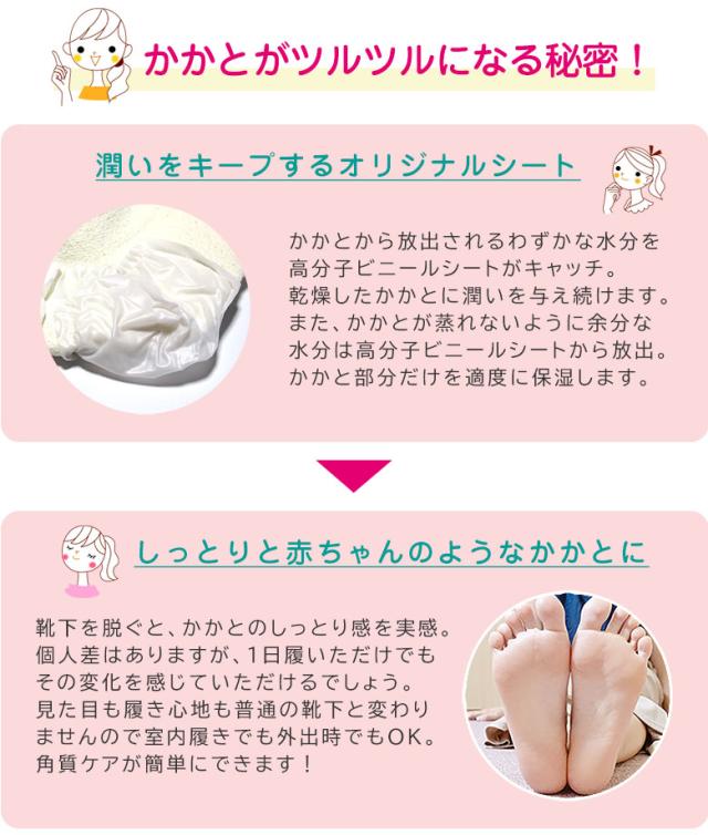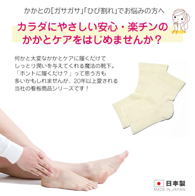 かかと削りで削ったり、かかとクリームを塗ったり等の面倒な手間は一切必なし。ただ履くだけの簡単かかとケア!