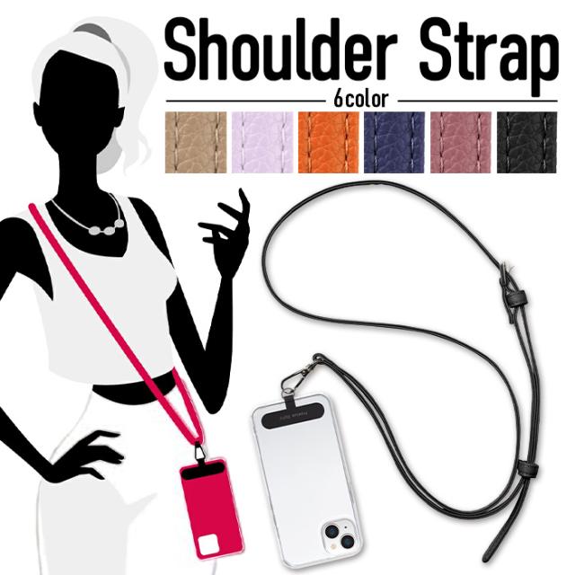 スマホショルダー ストラップホルダー付 ショルダーストラップ PUレザー ベージュ 斜め掛け iPhone アイフォン Android アンドロイド