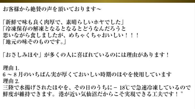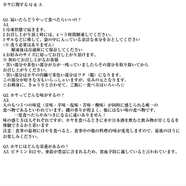| 原材料名 | ほや(宮城県産もしくは岩手県産) |