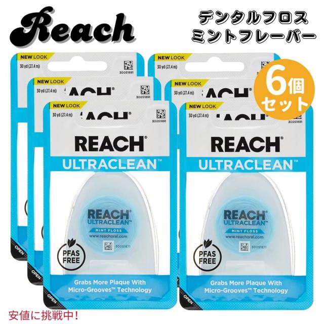 6個セット REACH リーチ ウルトラクリーン デンタルフロス ワックス付き ミント味 27.4m / 30yd Ultraclean Mint Waxed Dental Floss Mint Flavor