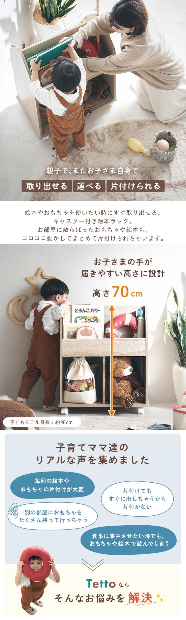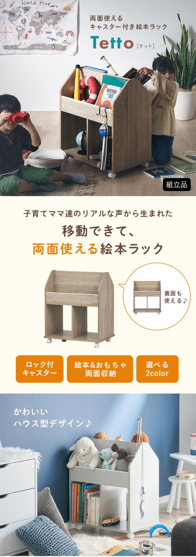 絵本ラック 絵本棚 キャスター付き 本棚 おもちゃ箱 おもちゃ収納 ブックラック ブックシェルフ ランドセルラック ランドセル収納 キッズラック 棚 木製 おしゃれ 子供部屋 Tetto(テット) 2色対応