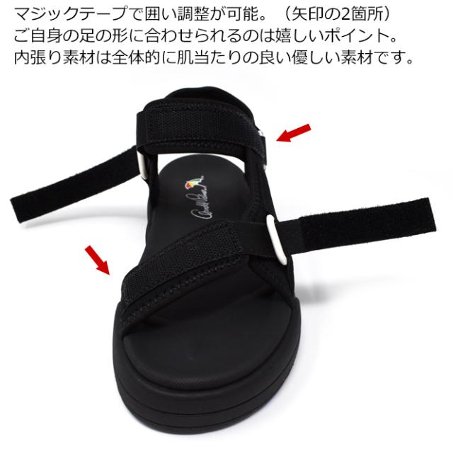 更に足の形に合わせて調節可能な マジックテープ の ストラップ で簡単にピッタリのサイズ感に◎