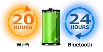Wi-Fi利用時最大20時間。Bluetooth利用時は最大24時間の長時間バッテリー