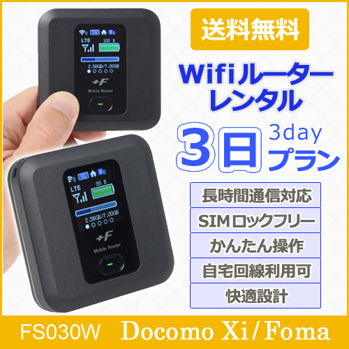 Wifi レンタル(3日で3GB) docomo レンタル2週間プラン 送料無料 FS030W wifi