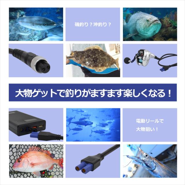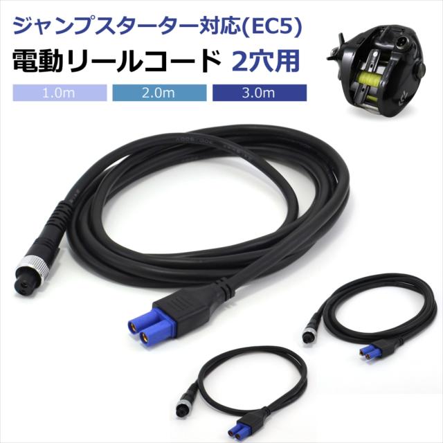 ジャンプスターター EC5 対応 電動リール コード 2穴 2芯 1m 2m 3m 電源コード 高耐久 ダイワ シマノ DAIWA SHIMANO 釣り 海釣り フィッシング 釣り竿