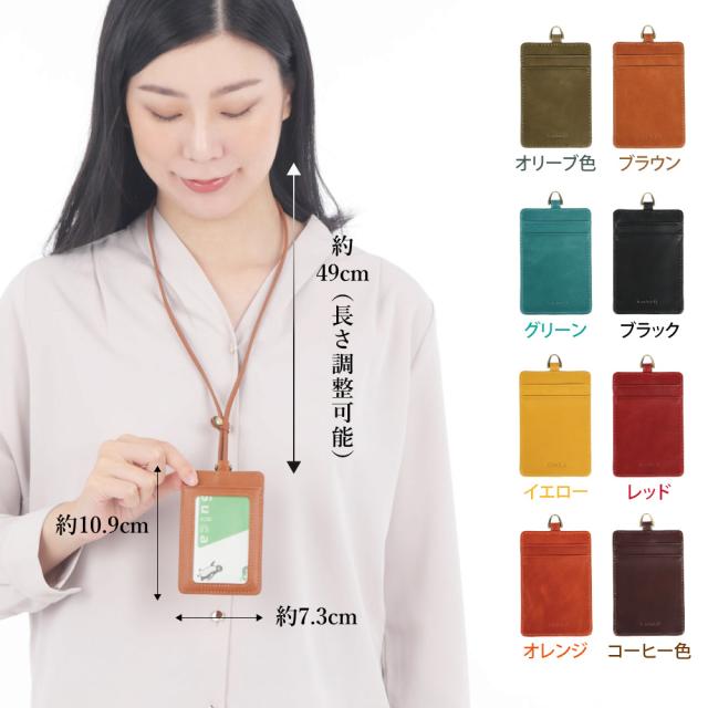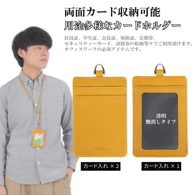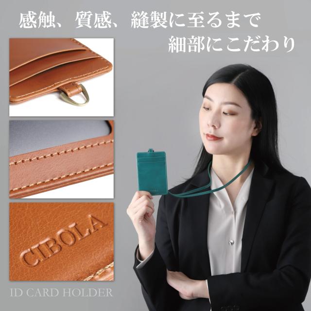 【CIBOLA】 高級牛革 IDカードホルダー ストラップ ネームホルダー 本革 首掛けストラップ 革 ネックストラップ 3枚 カード入れ 定期 社員証 ビジネス お洒落