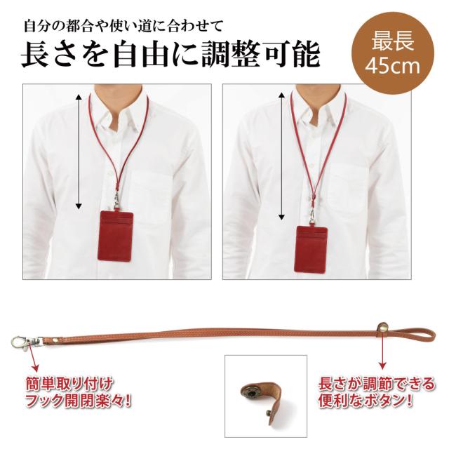 日本メーカーCIBOLA発売の高級牛革【本革】カードホルダー & 首掛けストラップ セットです、安心な日本ブランド、日本デザイン、日本品質の3J高級製品です。
