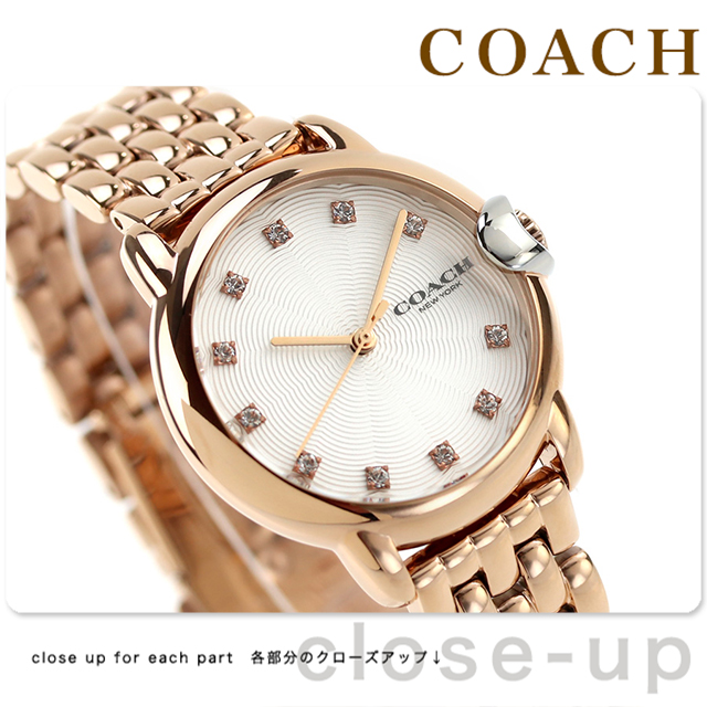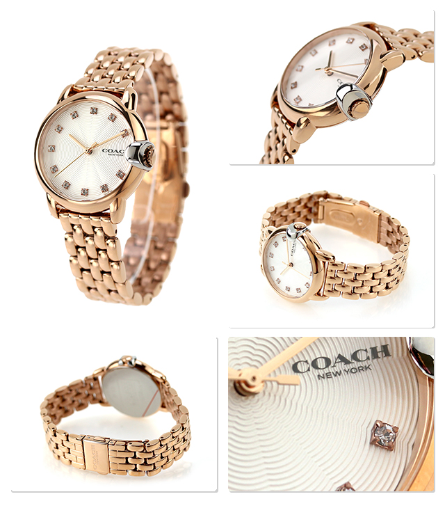 3年保証キャンペーン コーチ レディース 腕時計 14503820 COACH ARDEN アナログ ホワイト ピンクゴールド 白 ◆コーチは1941年にマンハッタンの小さなロフトで皮革製品の家内工業として始まりました。今日では世界中で絶大な人気を誇るファッションブランドです。男女問わず多岐にわたるシックで機能的なアクセサリーにきめ細かな最高品質の素材を用いて、現代的なアメリカンスタイルを取り入れた身近な高級品という新しい定義を形成しています。コーチブランドの柄、色、詳細な金具を取り入れたコーチウォッチは、最新のコーチバッグやデザインコレクションと新鮮でファッショナブルにマッチすると共に、精密なクオーツを備えてます。 文字盤のあしらったカットストーンや、立体的なCロゴのリューズなど、細部まで抜かりないデザインです。