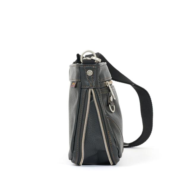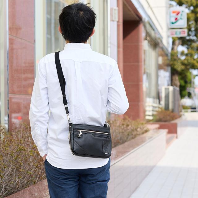 薄マチのショルダーバッグですが、荷物が多くなった時にはマチを拡張することができ、500mlペットボトルなども収納できます。ショルダーベルトは着脱可能で、クラッチバッグとして使用することもできます。