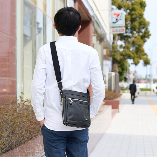 使いやすいスクエア型のショルダーバッグ。荷物が多くなった時にはマチを拡張することができます。ポケットも豊富で小物の収納もしやすいアイテムです。